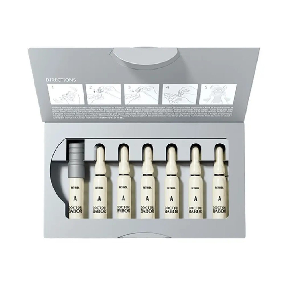 Концентрована сироватка-ампул DOCTOR BABOR Renewal Ampoule представляє наступне покоління засобів для покращення стану шкіри, що базуються на потужному потрійному про-ретиноловому комплексі — інкапсульованому ретинолі, бакучиолі та стабільному ретинілпальмітаті. Ця 7-денна серія ампул розміщена у фірмовому медичному склі BABOR, що захищає кожну формулу до активації для максимальної свіжості та ефективності. Всього за один тиждень шкіра виглядає помітно гладшою, пружнішою та вишуканішою