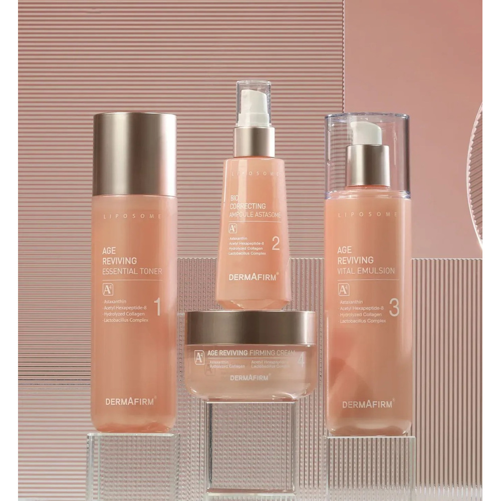 Age Reviving Essential Toner від DERMAFIRM — це високоефективний тонізуючий засіб нового покоління, розроблений для комплексного антивікового догляду. Завдяки унікальній A4 Age Reviving Delivery System із запатентованими комплексами Astasome® та Terrabiome™, тонік діє на глибокі шари шкіри, усуваючи основні ознаки старіння — втрату пружності, зморшки, тьмяність та сухість