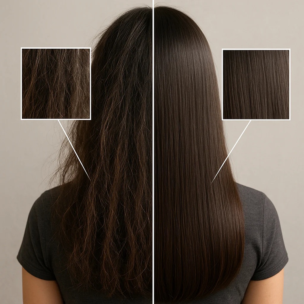 Кондиціонер глибоко проникає в структуру волосся, відновлюючи його зсередини. Пасма стають гладкими, слухняними та блискучими, зберігаючи природну пружність і легкість